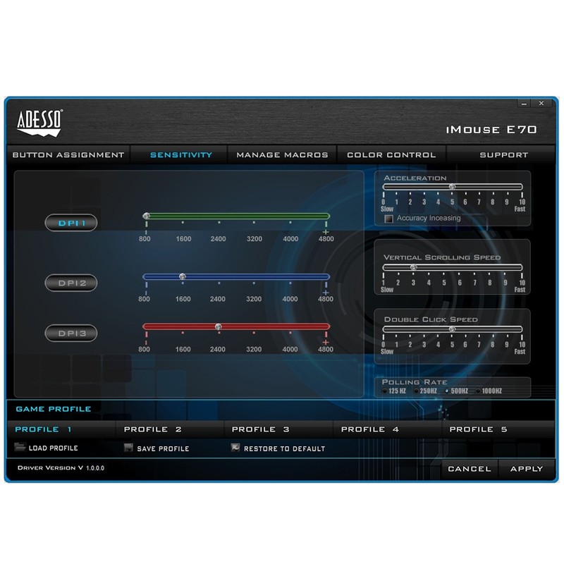 • Adjustable 3 Level DPI Switch (800 / 1600 / 2400)