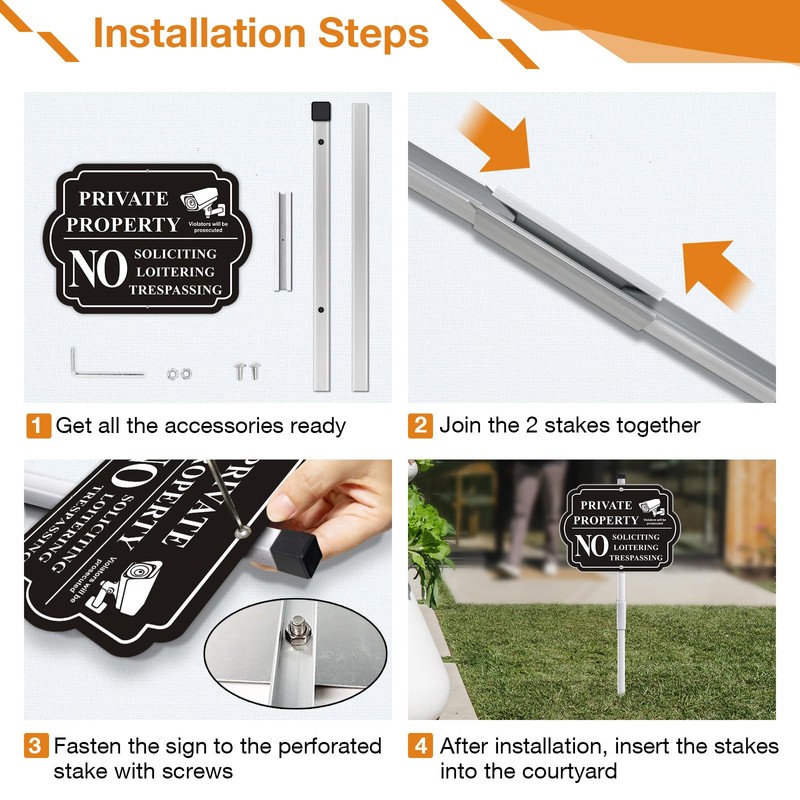 - 【Clear & Read】No Soliciting Sign for House look sleek, authoritative, and easy to read. The clearly visible black and white color easily catches the eye of would-be trespassers, making the sign more intuitive while effectively protecting your property.