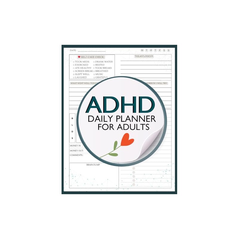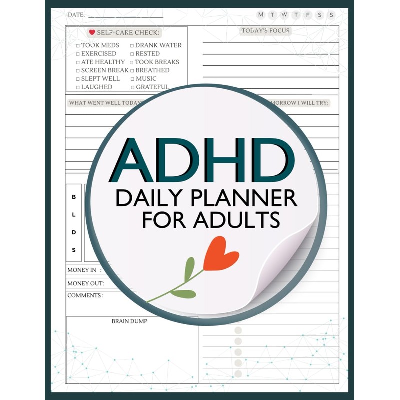 ADHD Daily Planner for Adults: Includes Monthly Goal Setting, Weekly Planning & Reviews, Daily Focus Pages, Mood & Medication Tracker, and Brain Dump Space.