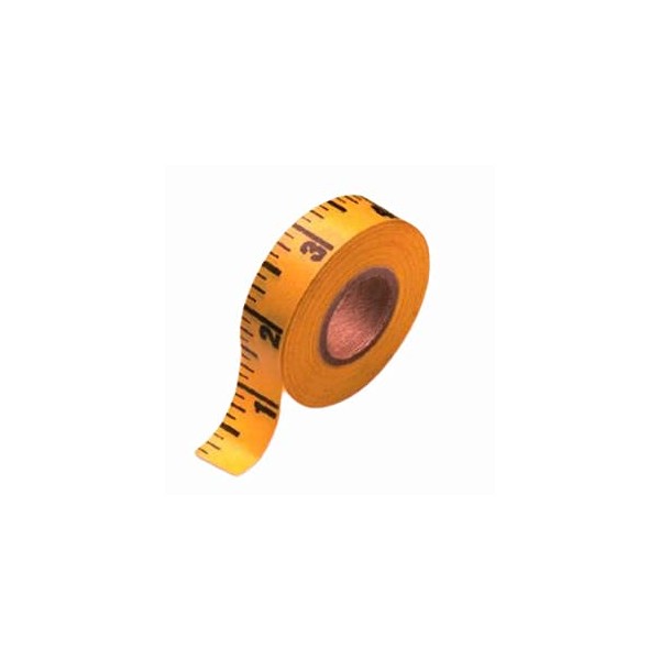 1 Roll (20 Yards) Yellow Adhesive Back Sewing Machine Table Tape Measure. Measure precisely—in increments of 1/8"—and easily with this adhesive tape measure. Pressure sensitive so it won't move around. Ideal for marking and using on sewing machine table, cutting table or put on press to verify size of items such as cashmere are correct after cleaning. Ideal for sewing, quilting, crafts & woodworking Read from left to right 1 roll of 20, 1" - 36" tape measures, 5/8" wide