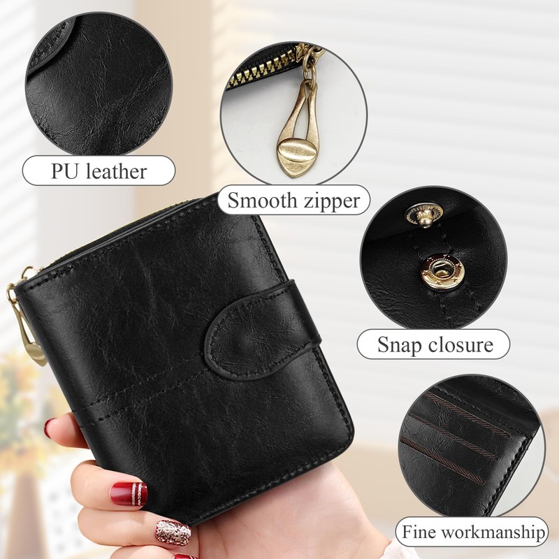 AdiStylinno Women Wallets, PU Leather Small Purse for Women Stylish Square Compact Small Wallet Portable Credit Card Wallet with Zipper Coin Pocket (Black)