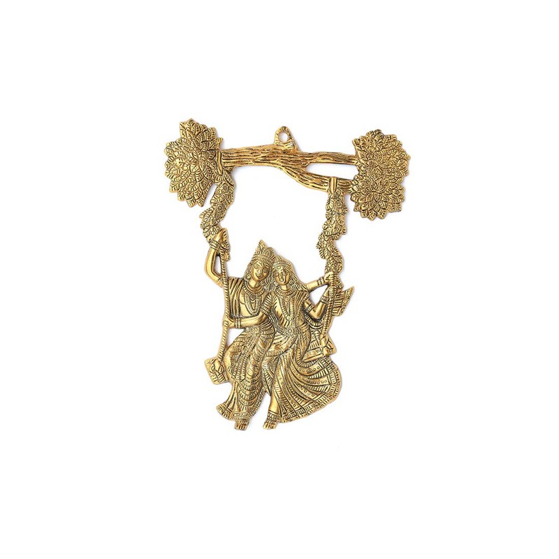 Aditri Creation メタル壁掛けラダ・クリシュナ壁装飾ツリージューラ・ジューラ・スイングインド装飾像アイドル壁装飾ホームオフィス寺院ギフトとインテリア用。 ホワイト