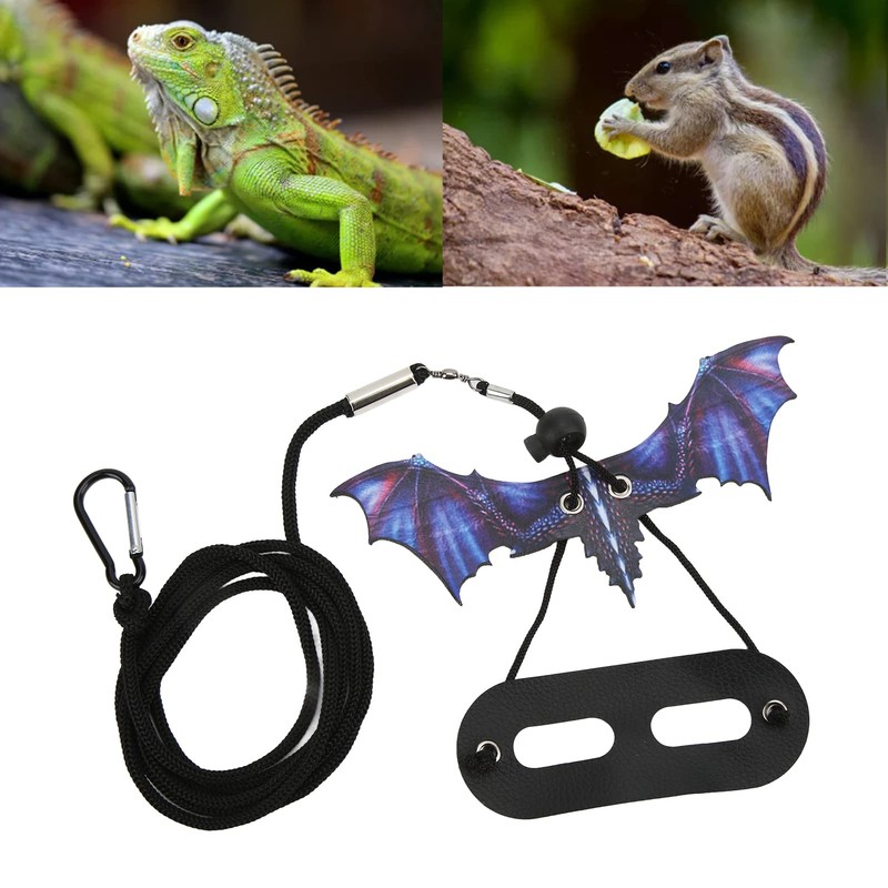 Adjustable Bearded Dragon Harness,Soft Leather Reptile Outdoor Walking Harness Leash with Cool Wing for Amphibians and Other Small Pet Animals