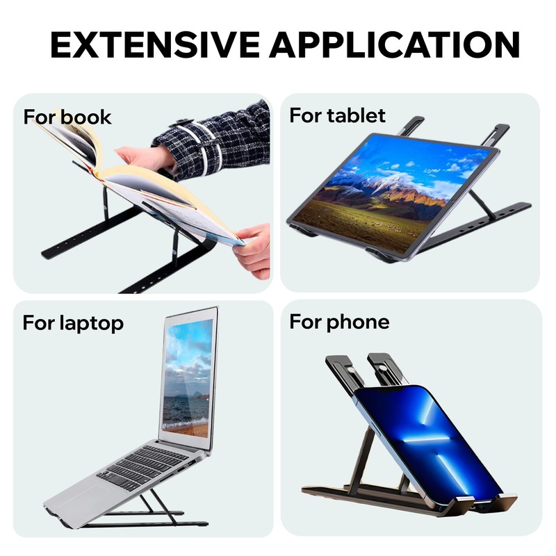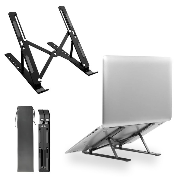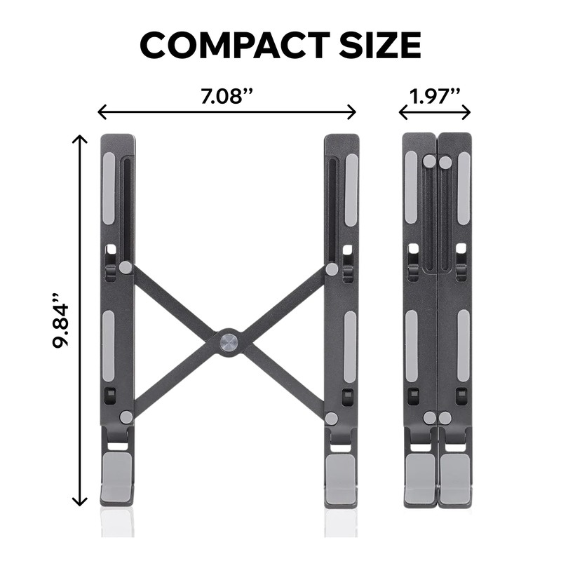 - 👜Lightweight, Compact & Travel-Friendly – Designed for portability, this laptop stand folds into a slim, compact size (7.08” x 9.84” x 1.97”), making it easy to carry in your backpack or laptop bag, so you can set up a comfortable workspace anywhere.