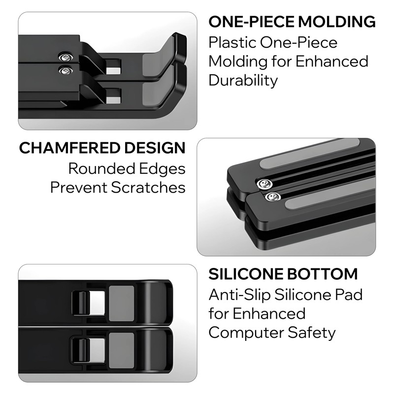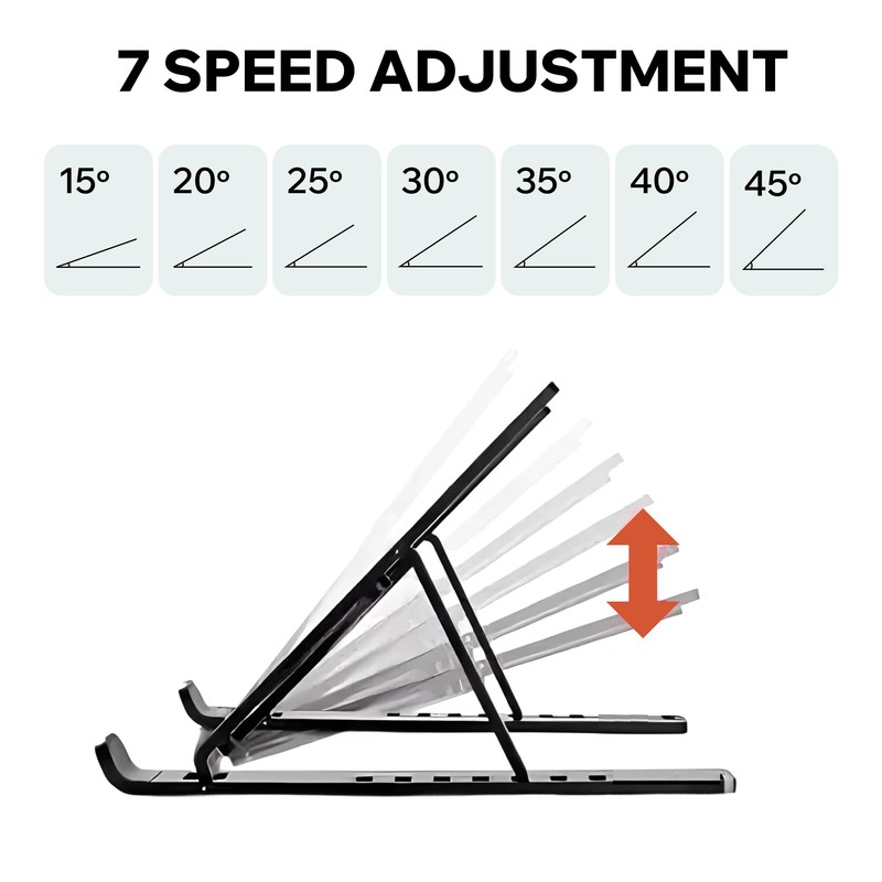 Adjustable Black Laptop Stand – Portable Foldable Plastic Riser for Laptops, Notebooks, Ultrabooks – Lightweight, Ergonomic, Travel-Friendly