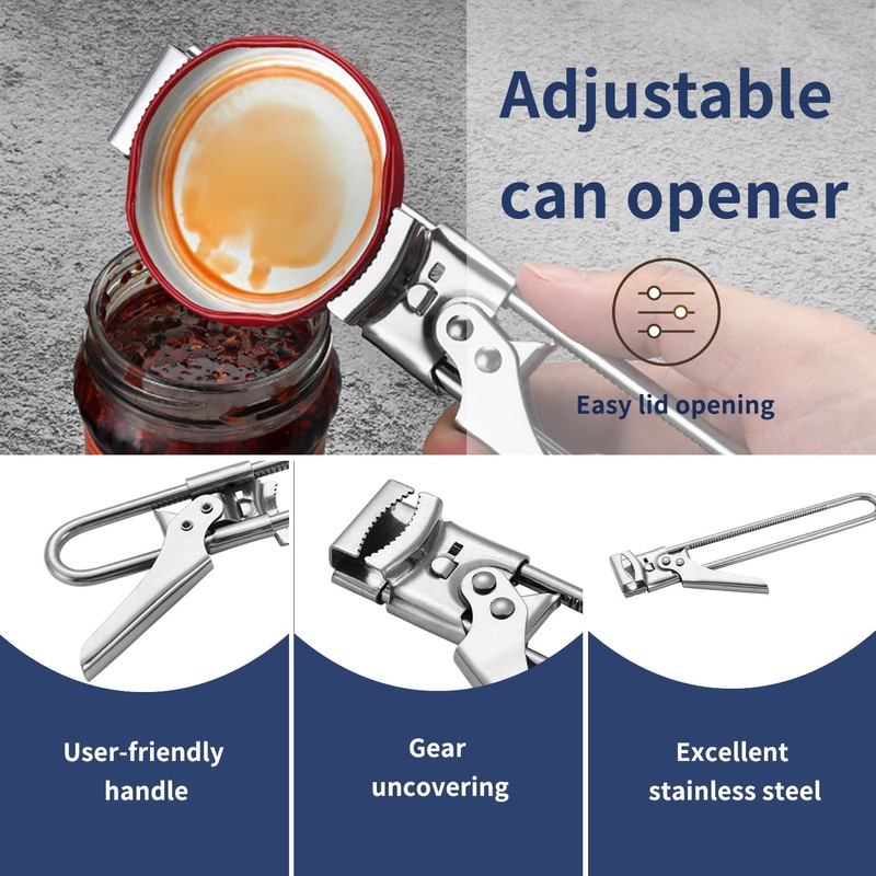- Material: Our adjustable can opener is made of stainless steel, smooth surface, feels comfortable, sturdy and durable, hard to bend, deform, wear-resistant and corrosion resistant and reusable.