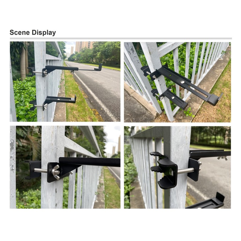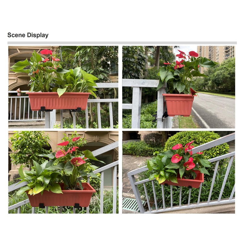 - The planter box brackets can be clamped on anywhere & at any height on the deck, patio or balcony railing, it can hold your flower box stably and you don't need to worry about it breaking, adjusts to any vertical railing, fence pole, banister or spindle made of aluminum, metal, wood and so on.