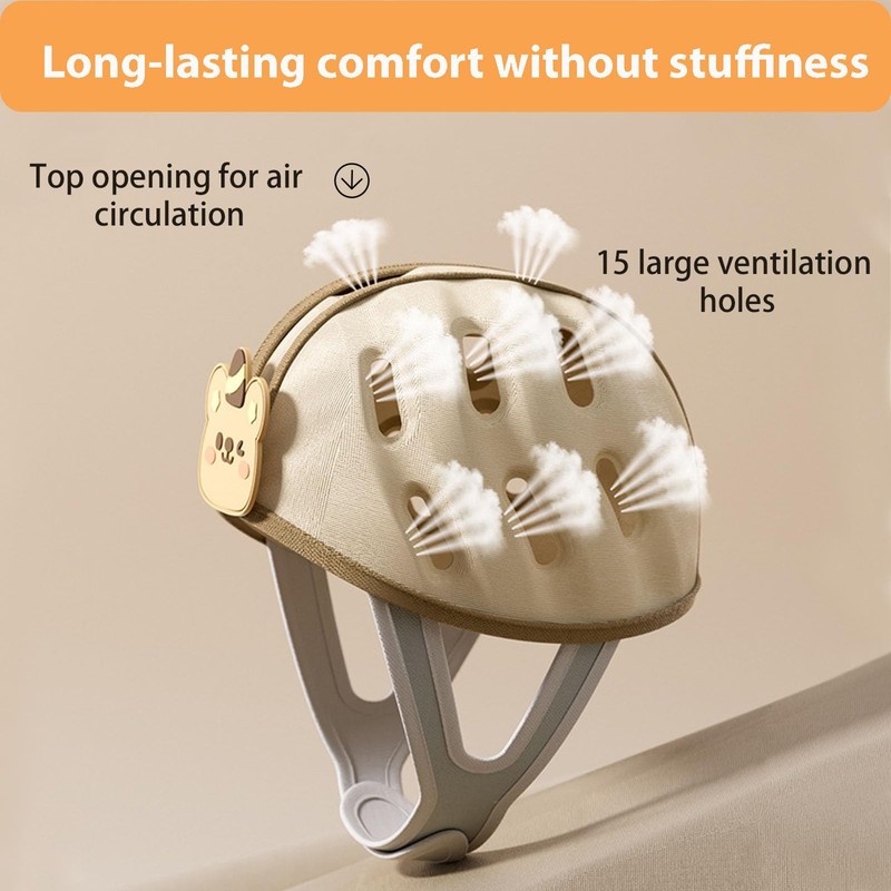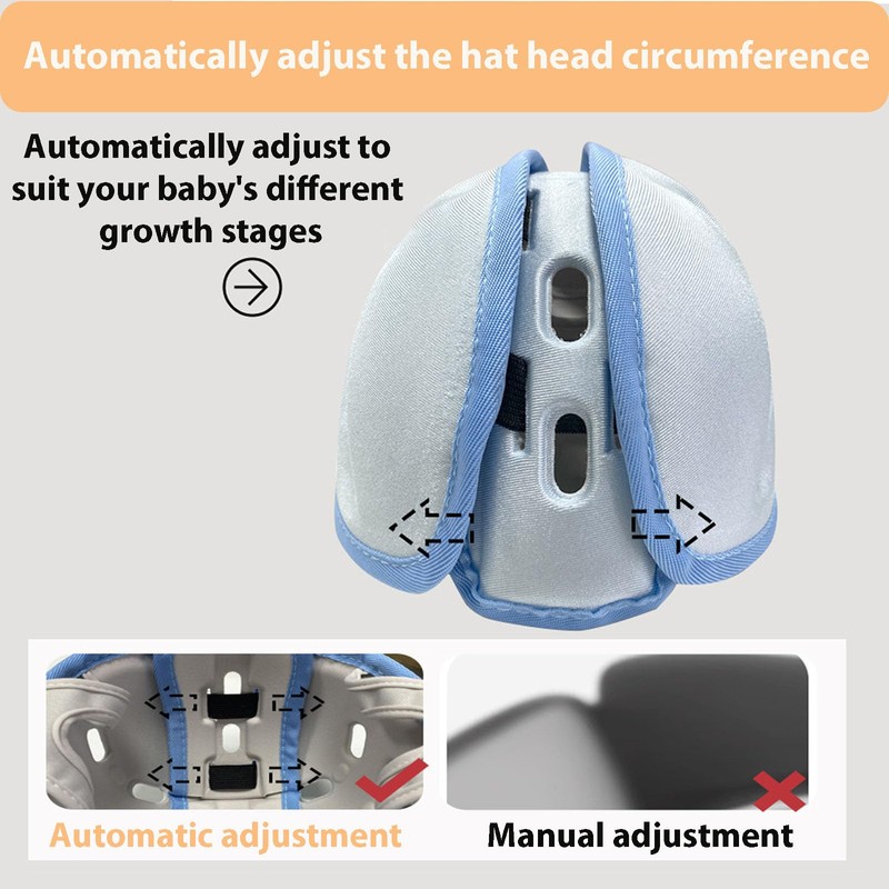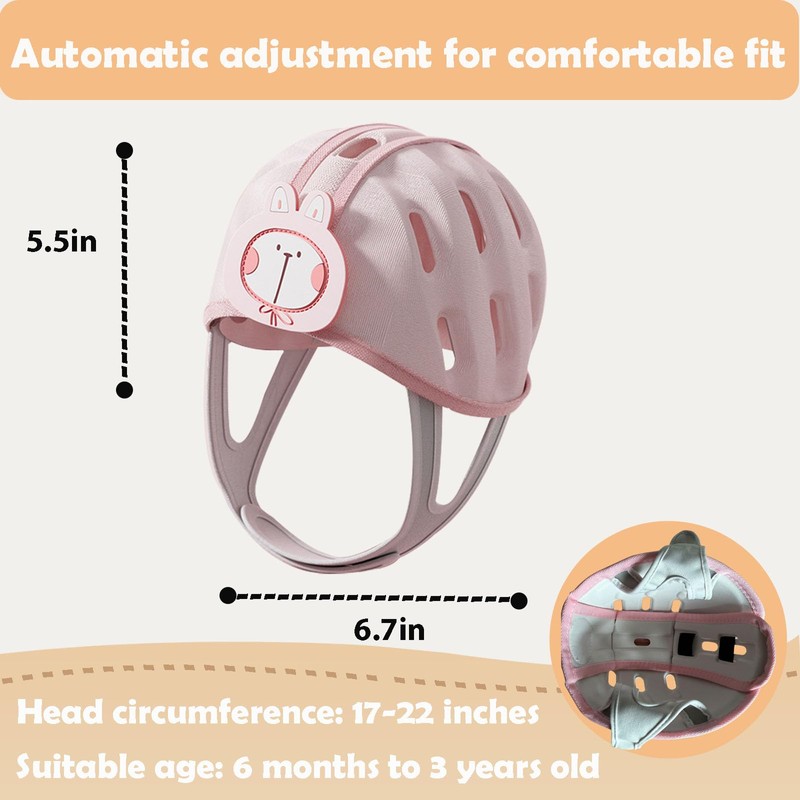 - 360° Baby Protector helmet:Baby helmet designed to add an extra layer of protection to the fontanelles and the back of the head while the baby is learning to crawl or walk.The three bumps on the top of the head play a cushioning role to reduce the damage to the head