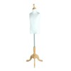 - Adjustable Mannequin Dress Form, Jersey Covered Form on Natural Wood Adjustable Tripod Stand.