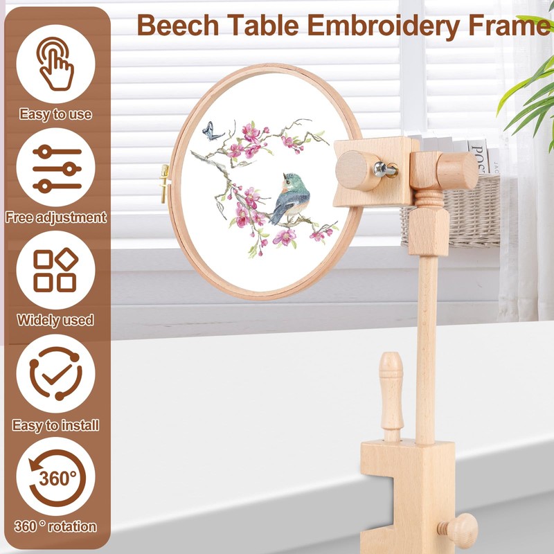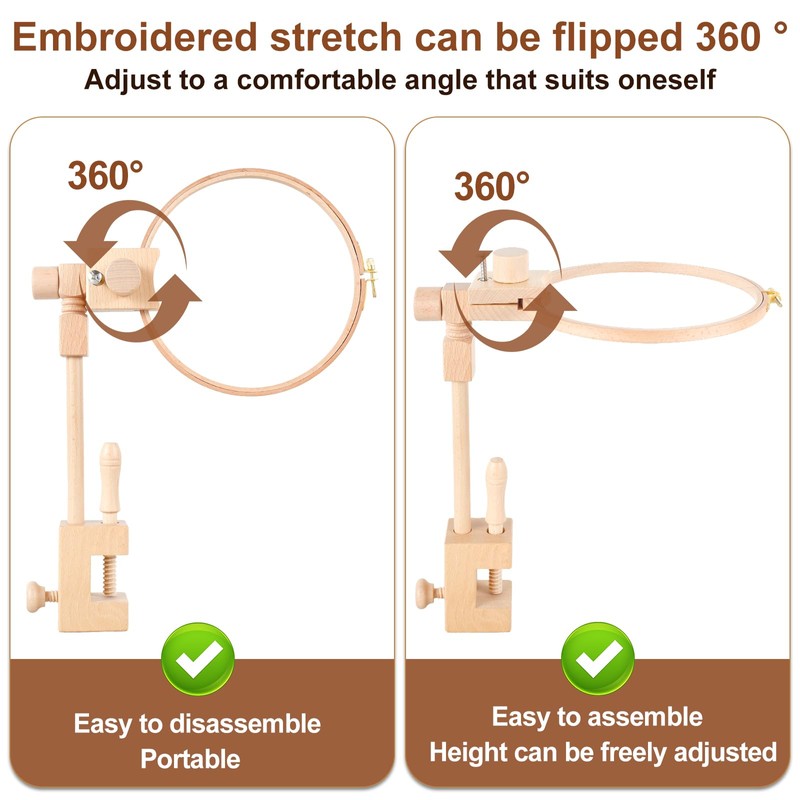 - [Suitable for Various Sizes of Embroidery Frames] The thickness of the embroidery frames can be clamped from 0-2.5cm, suitable for various sizes of embroidery frames. The embroidery stand is made of sturdy beech wood, durable