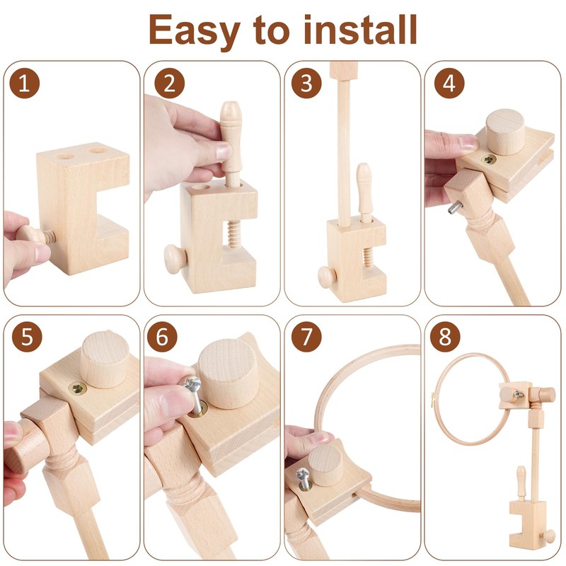 - [Easy to Install] The wooden embroidery stand can be easily installed and disassembled, with 20cm embroidery hoop, easy to assemble and carry
