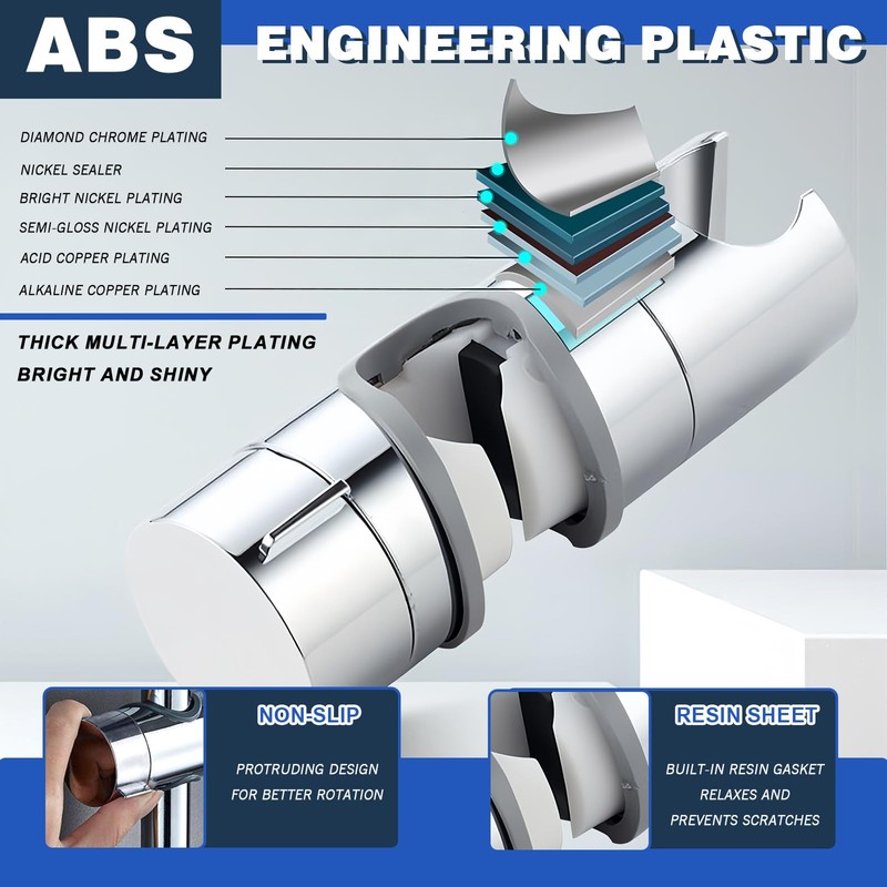 - 【Anti-slip Design】 The universal shower head socket has a built-in resin protection pad, which not only increases the bonding strength with the lift bar to keep the shower clamp fixed in place and not easy to slide down, but also protects the plated surface from scratches