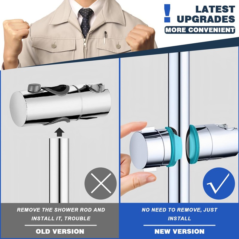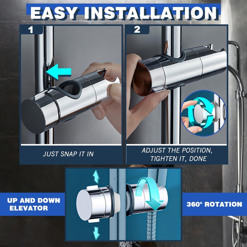 ✿Easy Installation: The shower head bracket is hole-free and won't damage the wall, no need to remove the shower slider bar, just fix it on the shower slide rail, tighten it to the desired height and replace it easily. Note: Do not over tighten the bracket screws.