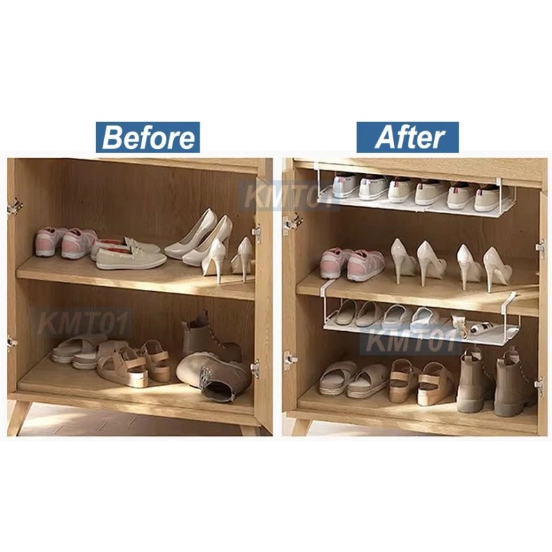 • Sleek and easy-to-install shelf conveniently hangs underneath the shelf in your wardrobe, kitchen cabinet, bathroom cupboards, shoe cabinets or desk.