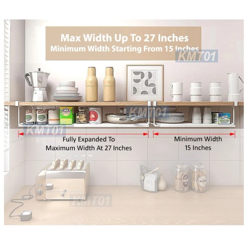 • This under shelf storage rack is extendable with variable width from minimum 15 inches to maximum 27 inches.