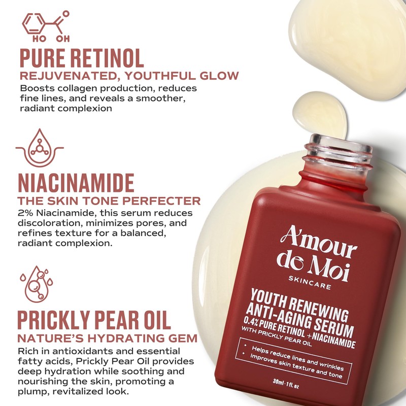 - Powerful Anti-Aging Retinol & Niacinamide Treatment: Our Retinol Treatment combines 0.4% pure retinol and 2% niacinamide to effectively reduce the appearance of fine lines, deep wrinkles, and dark spots. This powerful formula promotes a youthful, radiant complexion by improving skin texture and tone for a smoother appearance. Enhance your anti-aging routine with this potent retinol serum that helps improve skin texture.