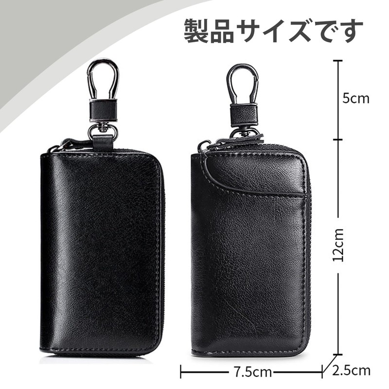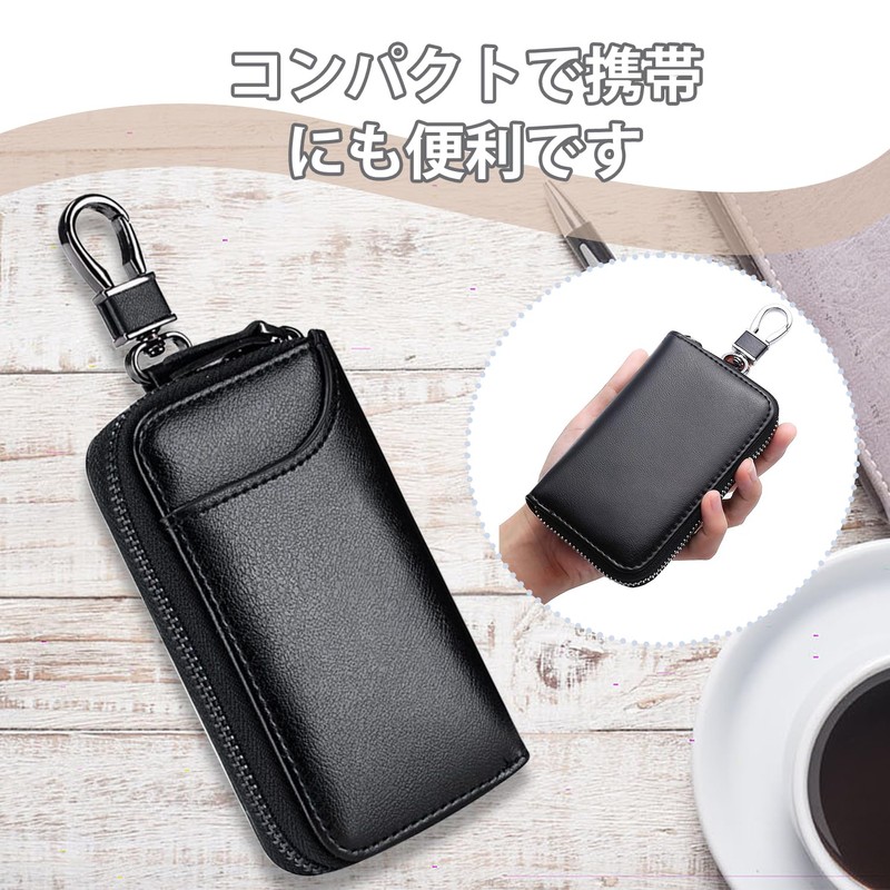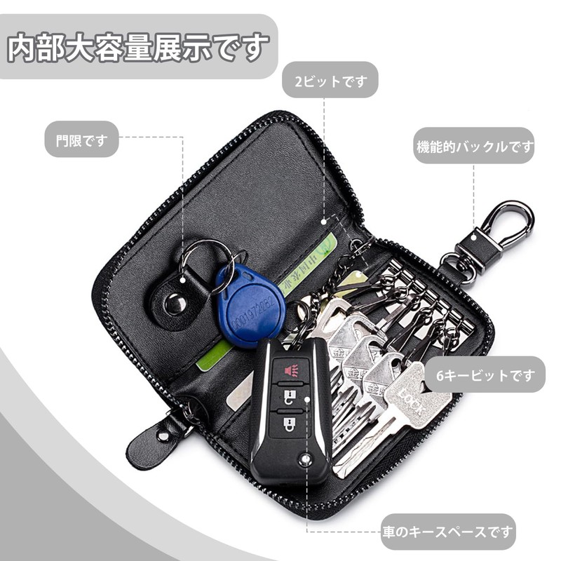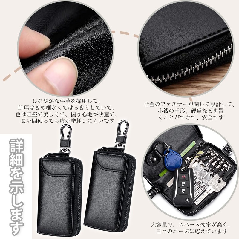 ADOFUN Key Case, Smart Key, Car Key Case, Men's, Key Holder, Card Key Case, Large Capacity, High Quality Genuine Leather, 6 Rows of Coin Purse, Zipper, Card Slot, Key Chain, Men's Key Case, Compact,