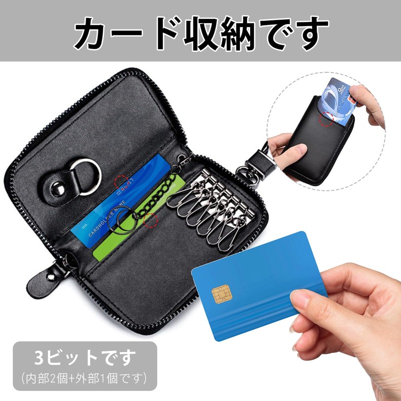 - Outstanding Storage Capacity: This large capacity key case can hold all your keys together. 6 Key Position, 3 Card Position, 1 Access Control Position, 1 Car Key Position Not only can you store your keys and smart keys, but also your cards and bills. The round zipper opens wide so you can easily access and remove keys