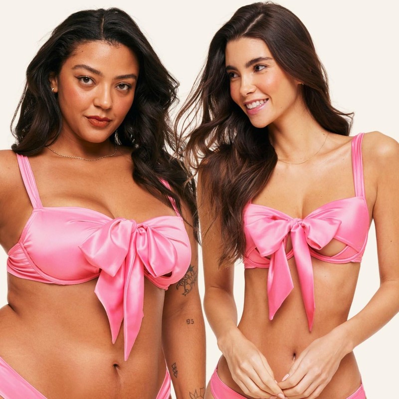Adore Me Gynger Unlined Bow Bra - XS-4X Regular & Plus-Size Satin Balconette Bra with Underwire & Adjustable Straps, Medium Pink, M