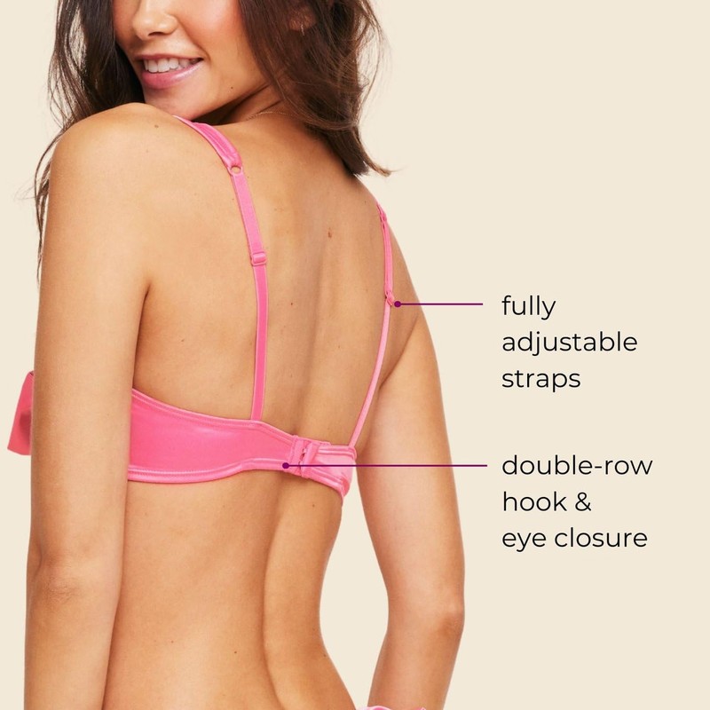 • Features: Gynger has a functional satin bow tie on the front, adjustable straps, and a double-row hook & eye closure in the back.