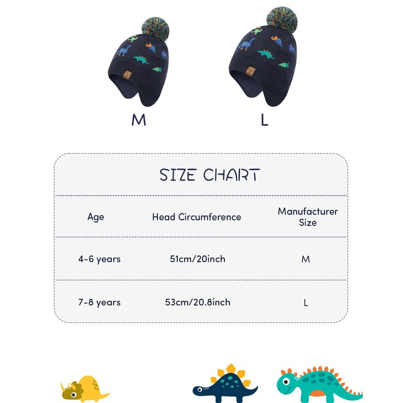 * Scarf and fleece-lined hat with cute bobble is printed with dinosaur pattern and is sure to be popular with dinosaur fans!