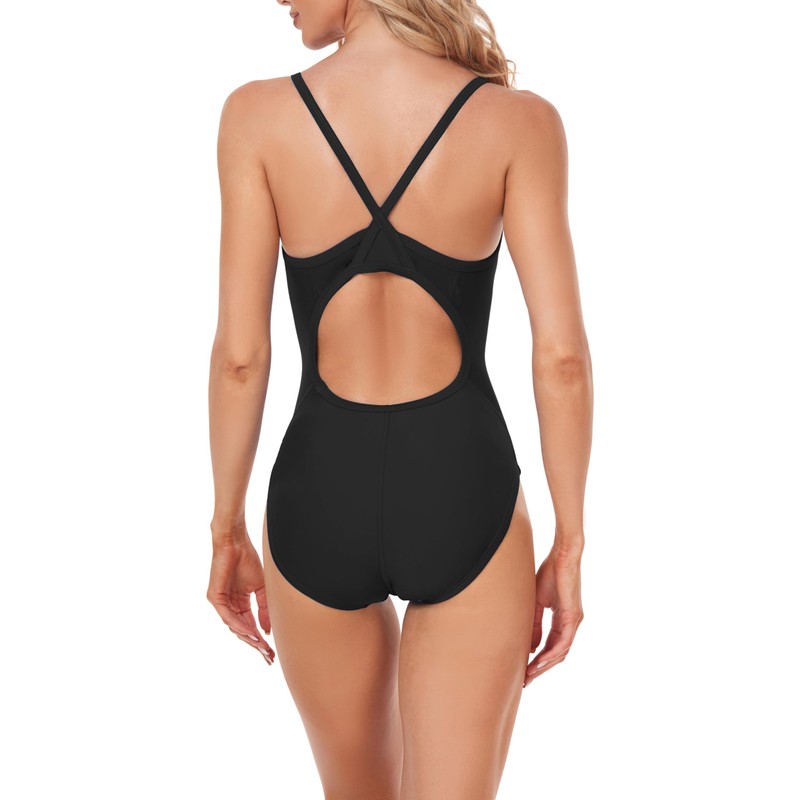 Adoretex Girl's/Women's Solid Pro One-Piece Athletic Sports Racing Swimsuit Swimwear (FN001)-Black-26