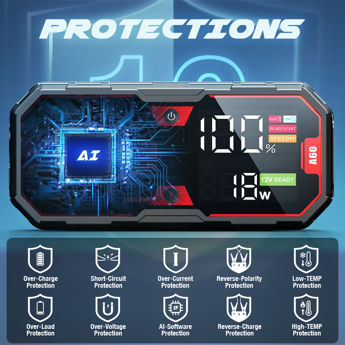 6000A Car Jump Starter Portable Battery Booster Jumper Box Power bank Smart Protection