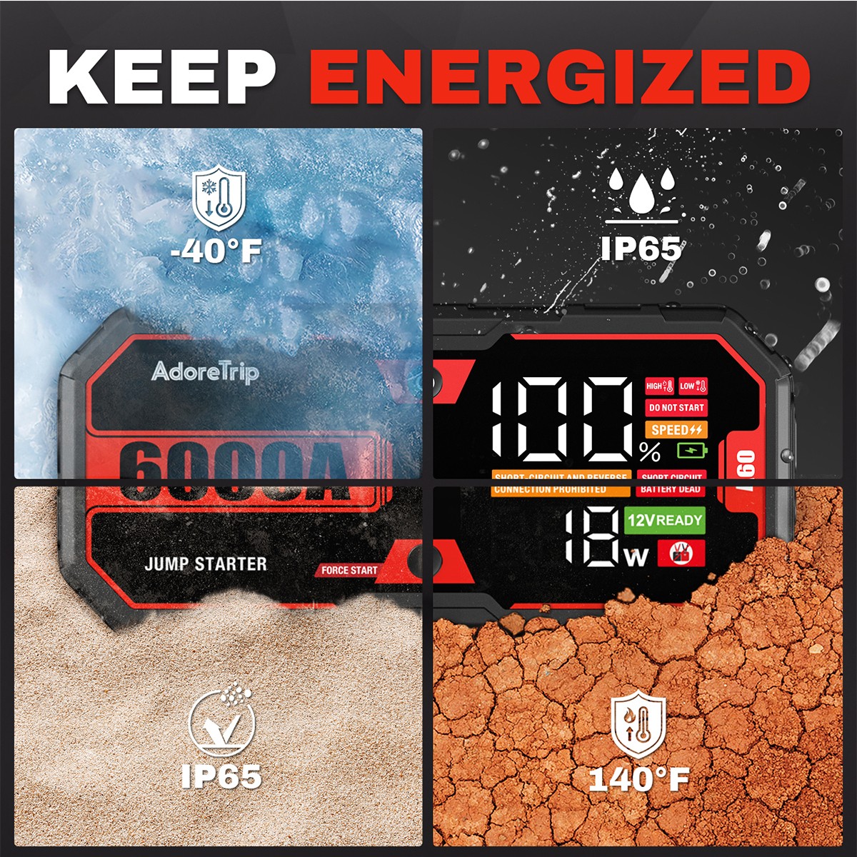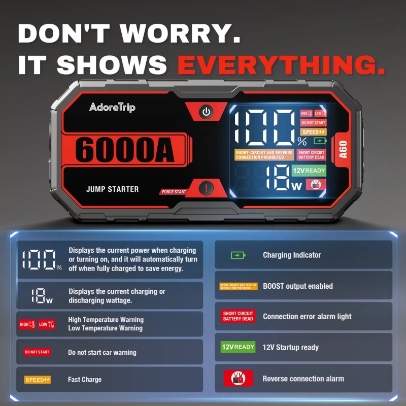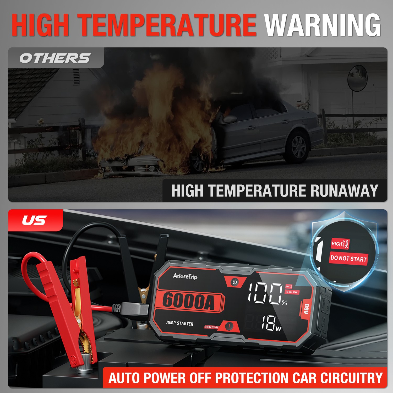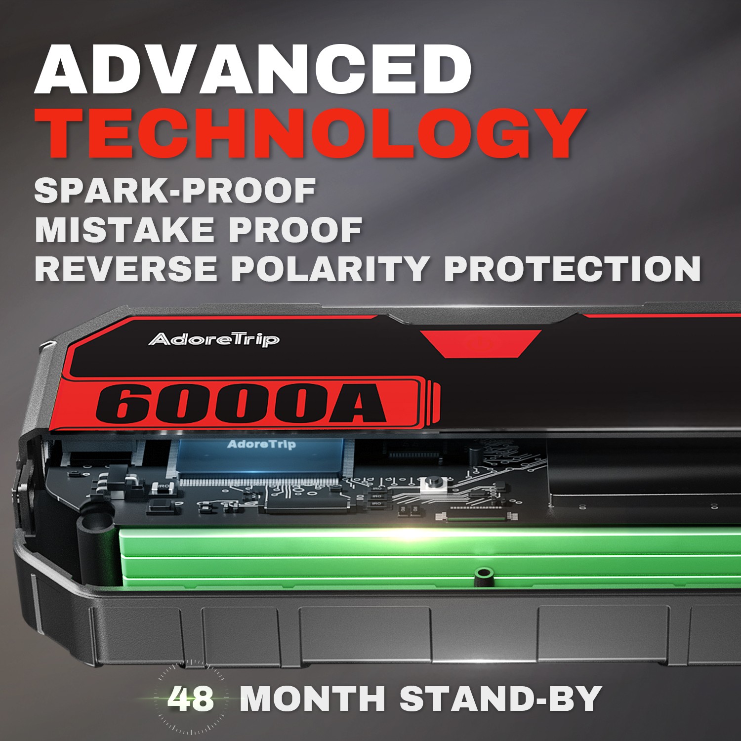 AdoreTrip 6000A Car Jump Starter Protable Battery Booster Jumper Box Heavy Duty