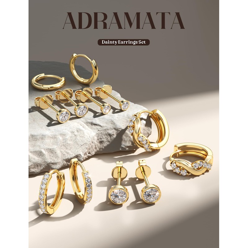 ADRAMATA 6 Pairs Sterling Silver Earrings Set for Women Hypoallergenic 14K Gold Stud Hoops 925 Silver Earring Stacks Dainty Small Cartilage Helix Earrings for Multiple Piercings