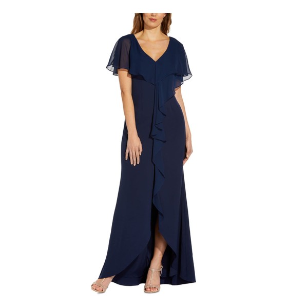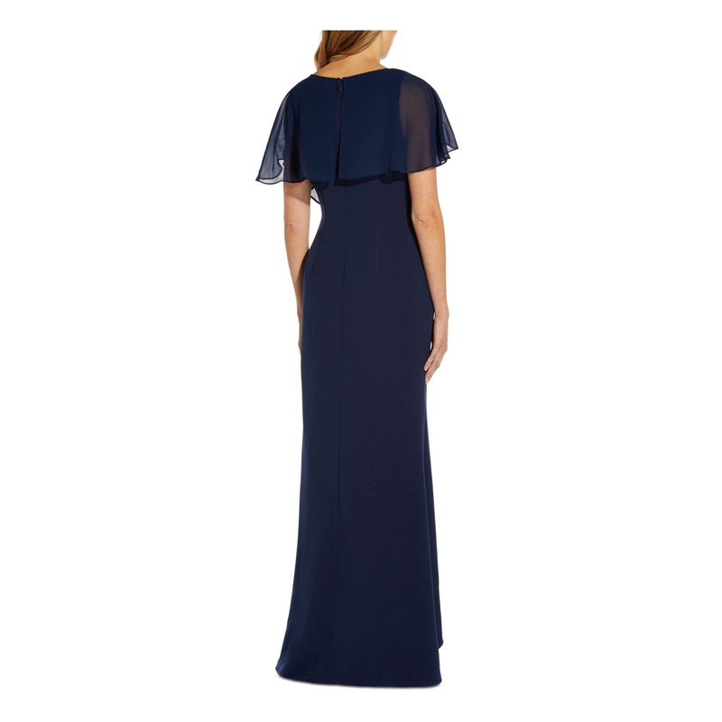 Adrianna Papell Stretch Crepe and Chiffon Flutter Sleeve Cascade Gown Navy 4
