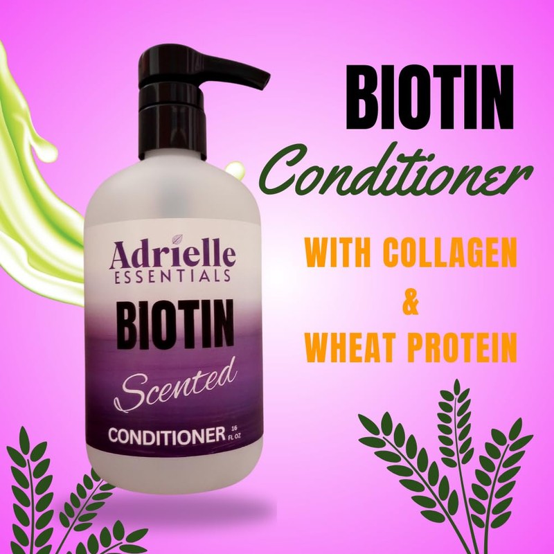 - Adrielle Essentials Biotin Shampoo and Conditioner Set contains nourishing blend of biotin, collagen, and wheat protein