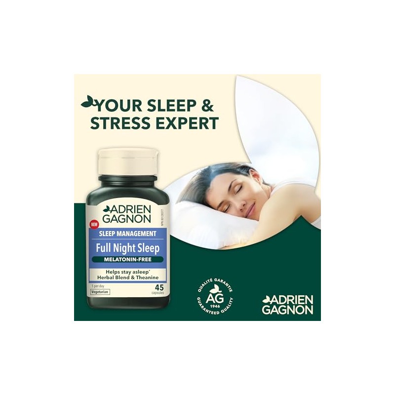 ADRIEN GAGNON Adrien Gagnon - Full Night Sleep, Theanine and Herbal Blend, Melatonin Free, 45 count