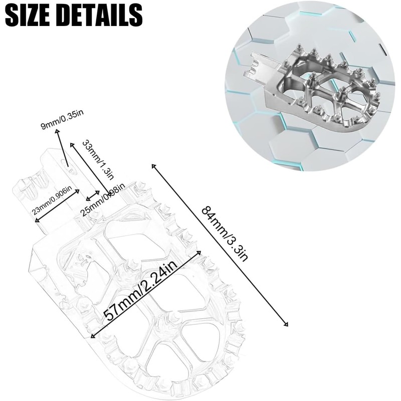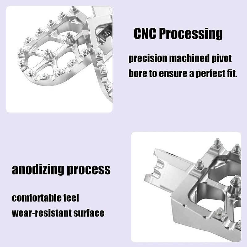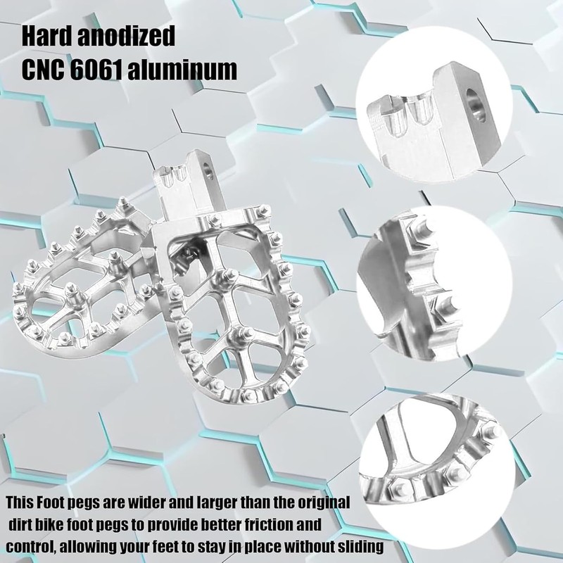Powerful function: This Foot pegs are wider and larger than the original dirt bike foot pegs to provide better friction and control, allowing your feet to stay in place without sliding