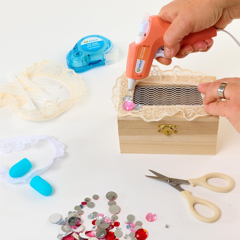 • Strong bonding: AdTech glue sticks adhere to a wide range of materials, including paper, metal, plastic, wood, fabric, ceramic, foam, lace, and more.
