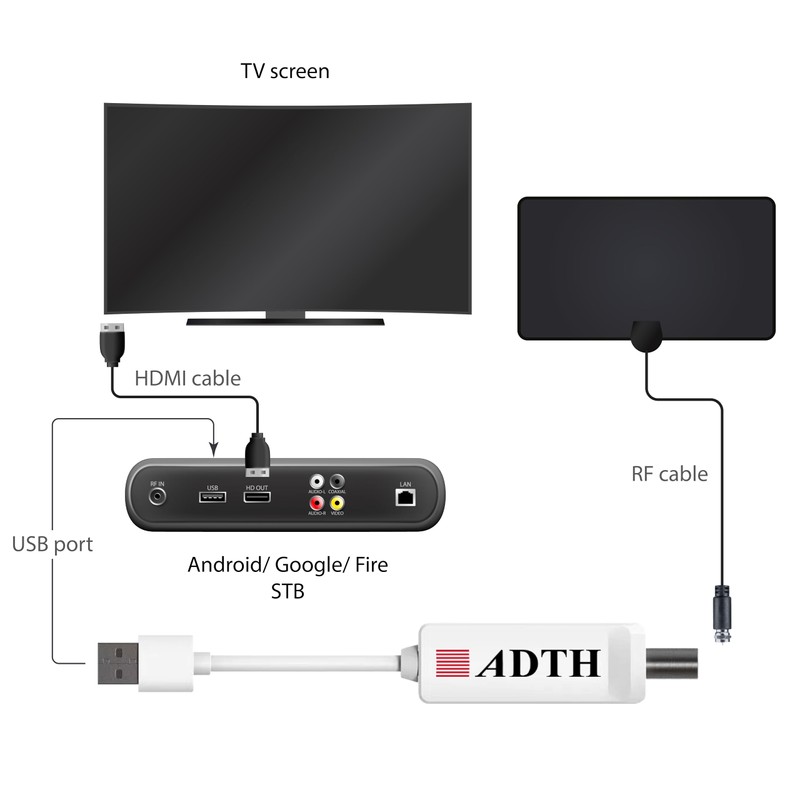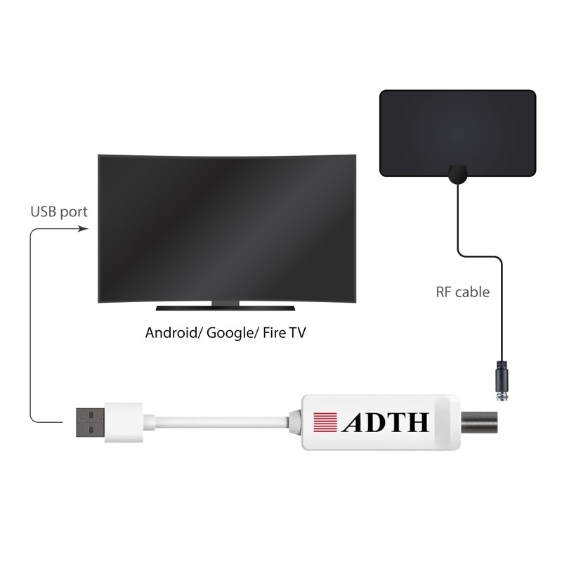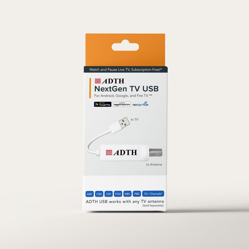 ADTH NextGen TV USB Works with Android TV and Fire TV. ATSC 3.0 Internet DRM Support.