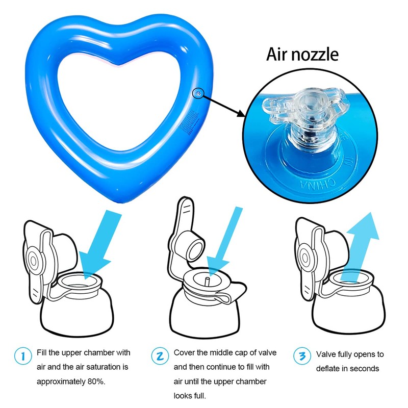 - 【Heart-Shaped Design】:Heart-shaped design is popular with people. With FAST Valves more than 5x faster inflatable (blow up) and deflation and can be ride on ridable Swimming pool and beach travel essentials in the summer.