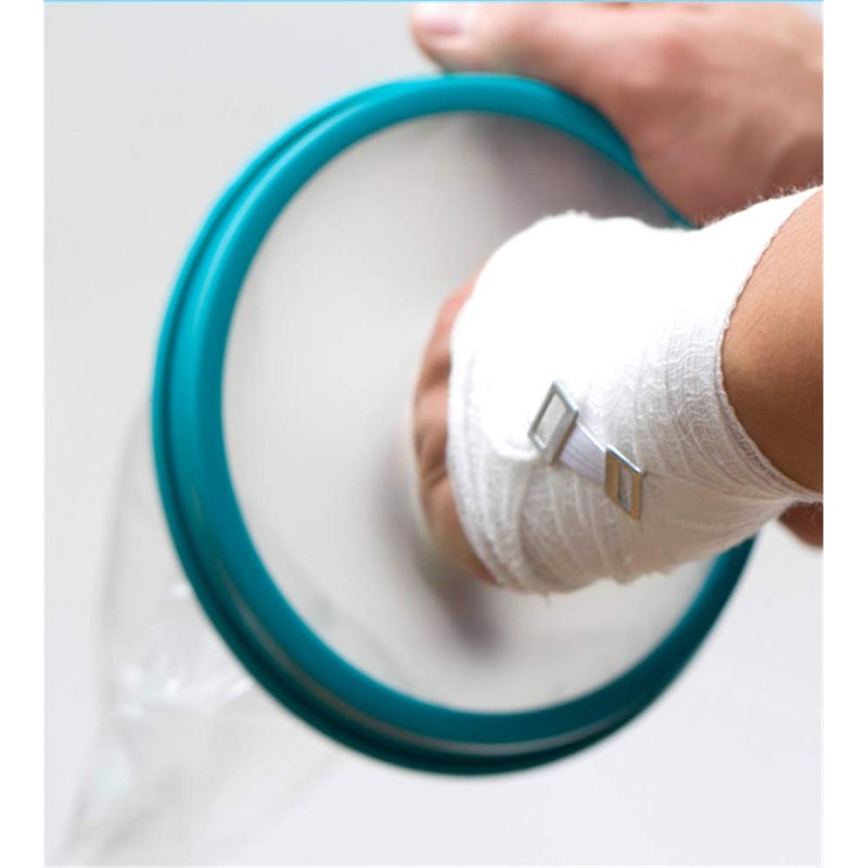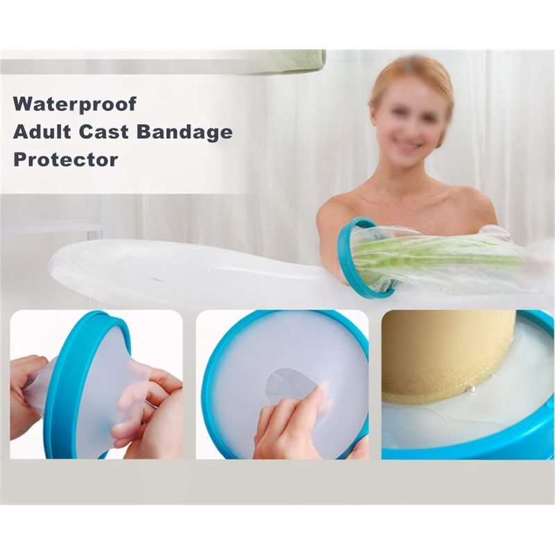 The cast protector is generously sized to accommodate most adult arm sizes with plaster or synthetic casts.