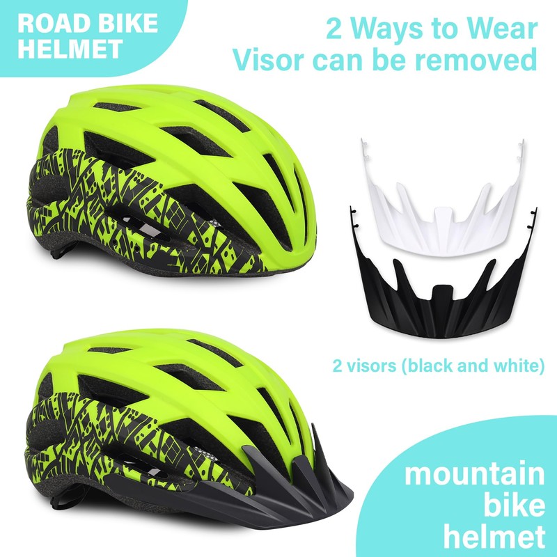 Adult Youth Bike Helmet, Adjustable Women Men Kids Boys Girls Teen Helmets for Ages 8-10-12-14+ Years, 2 Detachable Visor, Lightweight Mountain Road Bicycle Cycling Helmets