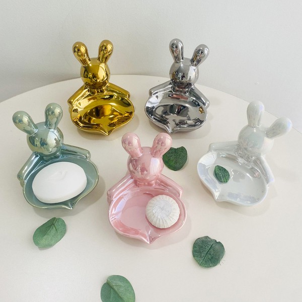 Adung Playground Luxury Rabbit Ceramic Bathroom Soap Dish Holder Soap Box, Green_Rabbit Soap Dish / 아둥놀이터 럭셔리토끼 도자기 욕실 비누받침대 거치대 비누곽, 그린_토끼비누받침
