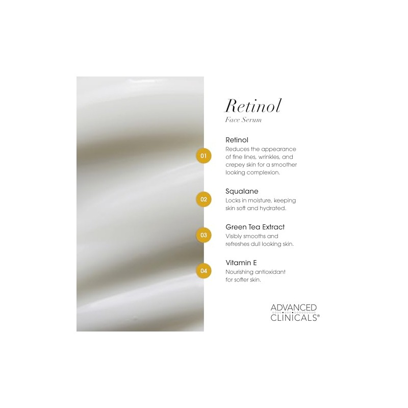 ADVANCED CLINICALS SUERO FACIAL RETINOL ANTI-ARRUGAS CON GLICERINA, ALOE VERA Y TE VERDE 52ML 2 PIEZAS