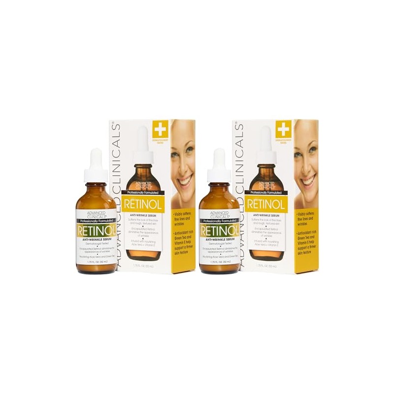 ADVANCED CLINICALS SUERO FACIAL RETINOL ANTI-ARRUGAS CON GLICERINA, ALOE VERA Y TE VERDE 52ML 2 PIEZAS