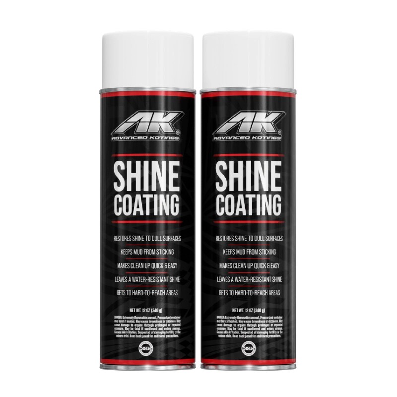 AK Shine Coating is a silicone based aerosol spray that quickly treats dry, faded plastics, rubber and vinyl. The Shine Coating is great for hard-to-reach areas and protects against UV damage, while restoring faded plastics. Apply to your street vehicles trim, and off-road UTV, ATV, and Dirt Bike to help keep mud and grime from sticking, cutting cleanup time in half. Spray on before hitting the trails or track and cut your post-ride cleanup time, or apply after cleanup to bring back a high gloss shine.
