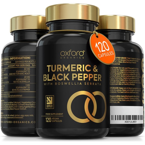 Advanced Turmeric Capsules High Strength 3000mg, Boswellia & Black Pepper | ONE per Day | 4 Month Supply | Turmeric and Black Pepper Capsules Locally Made in UK, Turmeric Powder Joint Care Supplements