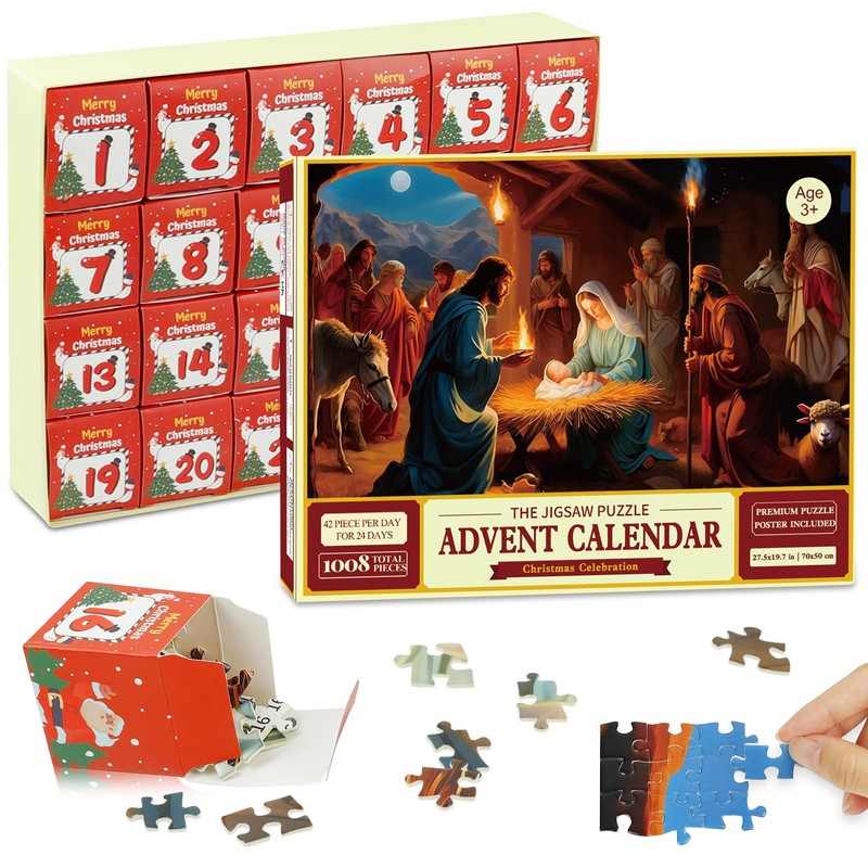 Advent Calendar 2024 Nativity Jigsaw Puzzle - 1008 Pieces Puzzle 24 Days Christmas Countdown Calendar, Christmas Gifts for Adults and Kids, Home Decoration 27.6in x 19.7in