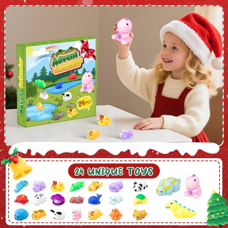 • 2025 Mochi Squishy Advent Calendar -- Christmas is the year’s most exciting festival. How can you build your child’s anticipation for the holiday? This Christmas Advent Calendar is the perfect way to celebrate. Behind each of the 24 doors lies a new surprise toy — open one each day for a wonderful experience!