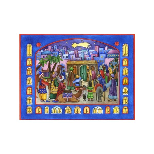 Dieser schöne Adventskalender wurde in Deutschland vom Richard Sellmer Verlag Company hergestellt. Dieser neue Papierkalender ist ca. 26,7 x 35,6 cm. Das detaillierte Bild hat 24 kleine Türen. Jede Tür hat einen englischen Bibelvers. Die Tradition ist es, jeden Tag vom 1. Dezember bis zum 24. Dezember eine Tür zu öffnen. Kinder lieben es, jeden Tag eine Tür zu öffnen, während sie bis Weihnachten zählen. Dieser Kalender hat Glitzer Die Tradition des Adventskalenders stammt aus dem Jahr 1851 in den protestantischen Teilen Deutschlands. Der erste Adventskalender mit kleinen Türen wurde in den frühen 1900er Jahren gedruckt und setzt heute fort.