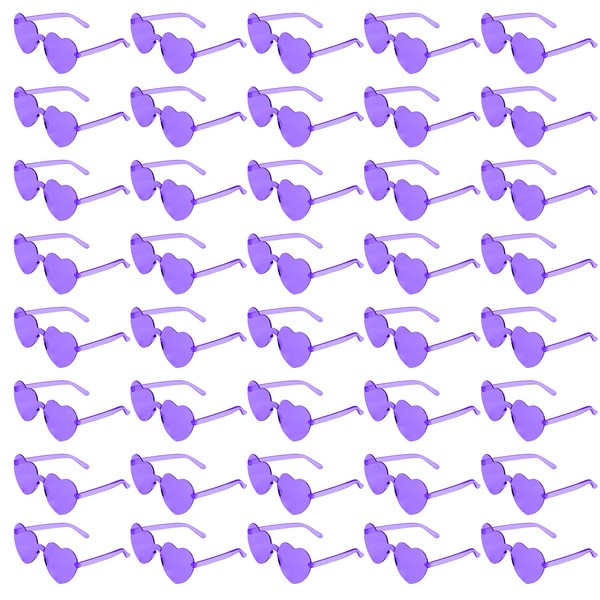 AEAHALY 40 Purple Heart Sunglasses Bulk for Women & Kids, Rimless Heart Shaped Glasses for Party Favor