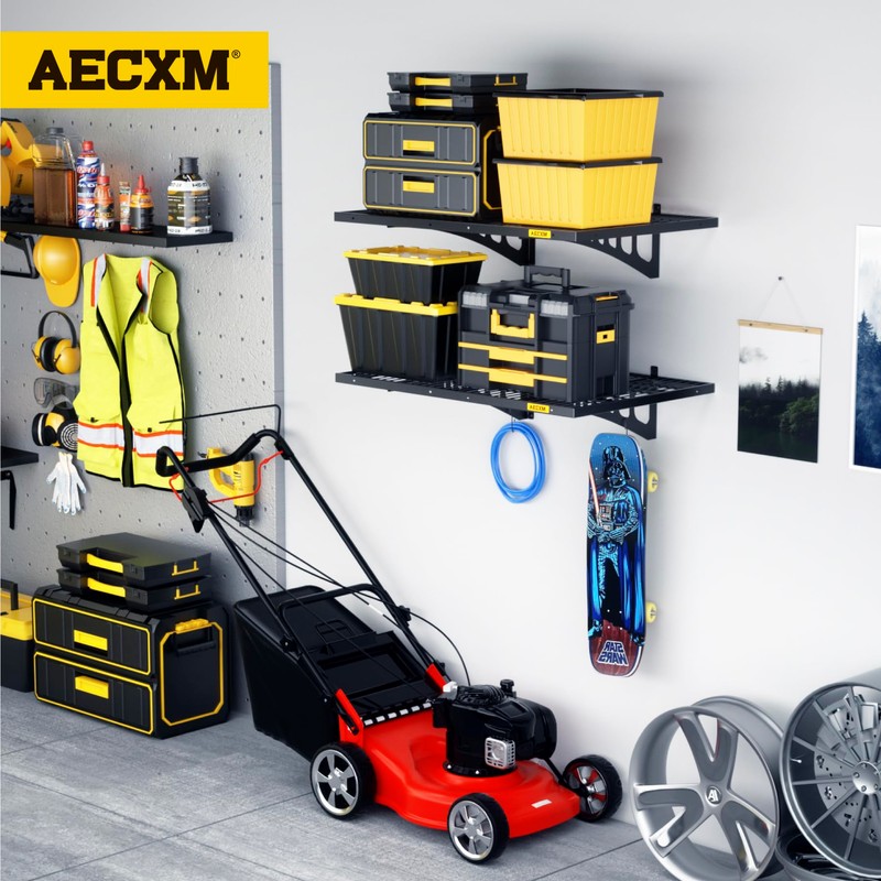 Aecxm 2 Pack-1.64x4ft Wall Garage Storage Shelf, Adjustable Sliding Rail Design Garage Wall Shelf, for Tool Room, Storage Garage Wall Storage Shelf (Black)