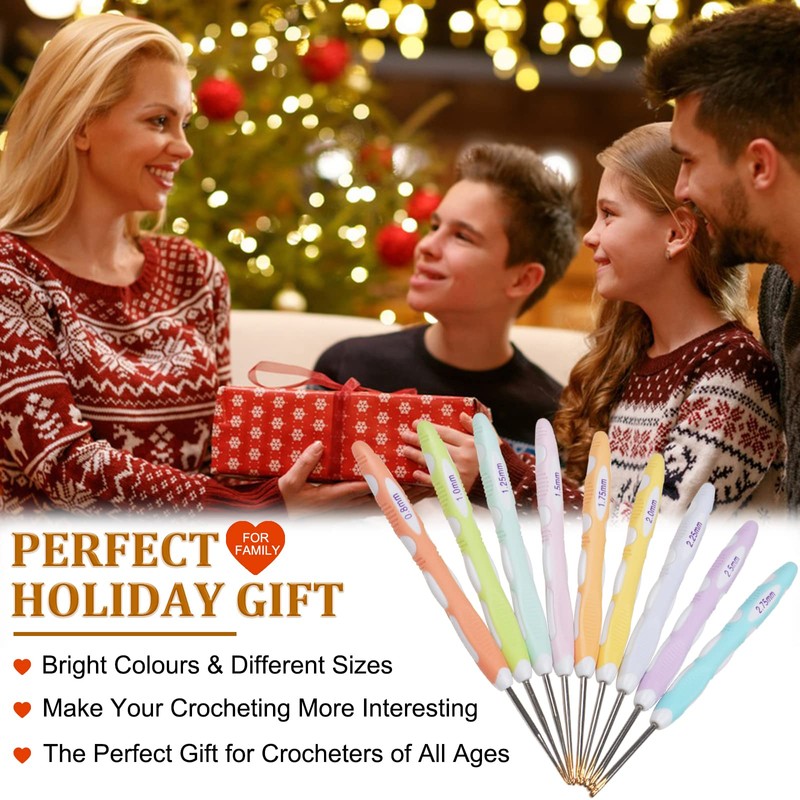 Aeelike 9-Piece Lace Crochet Hook Set with Candy Colours TPR Soft Grip for Beginners, Adults, Professionals