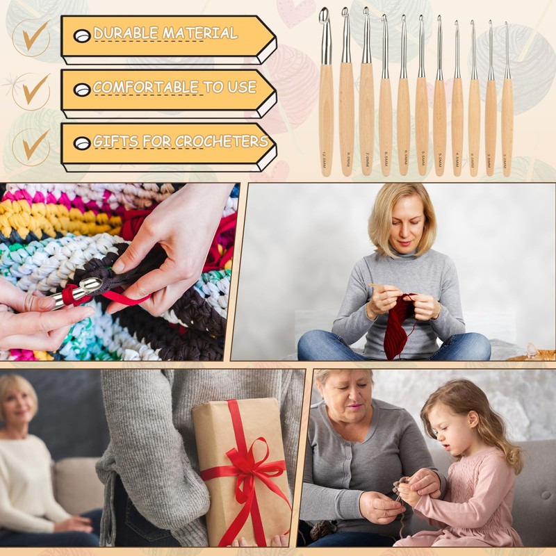 - Set contains: 1 piece high-quality crochet hook wooden handle.